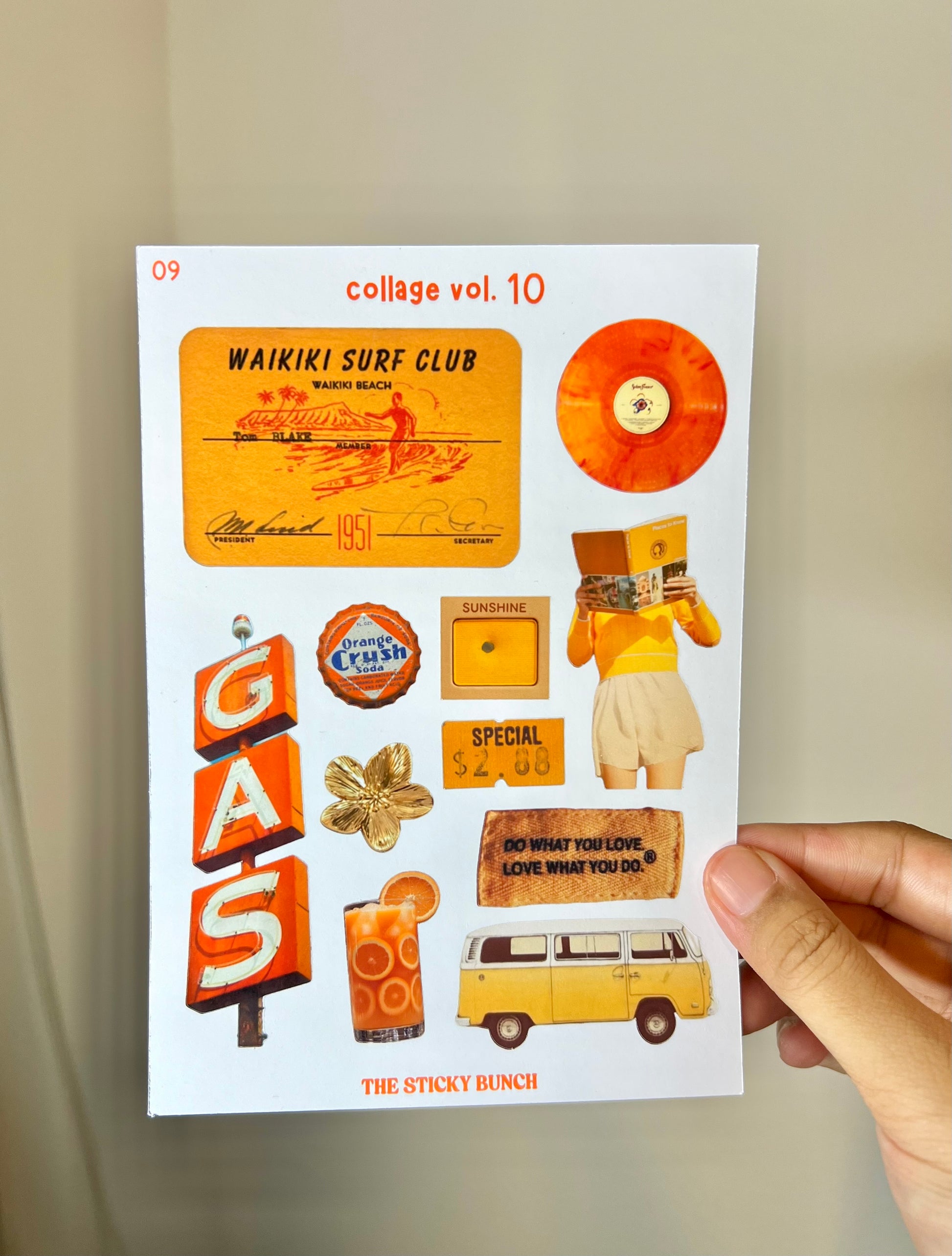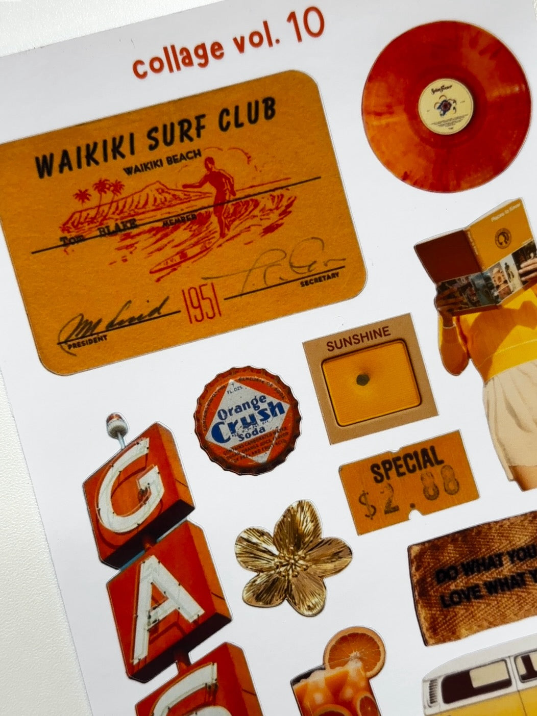 Bring the sunshine to your pages with Collage Vol. 10, an ode to summer in warm orange and golden yellow tones. This sheet is filled with sun-drenched details that capture the carefree energy of the season—perfect for layering into collages, journal spreads, or scrapbooks that glow with summertime charm.