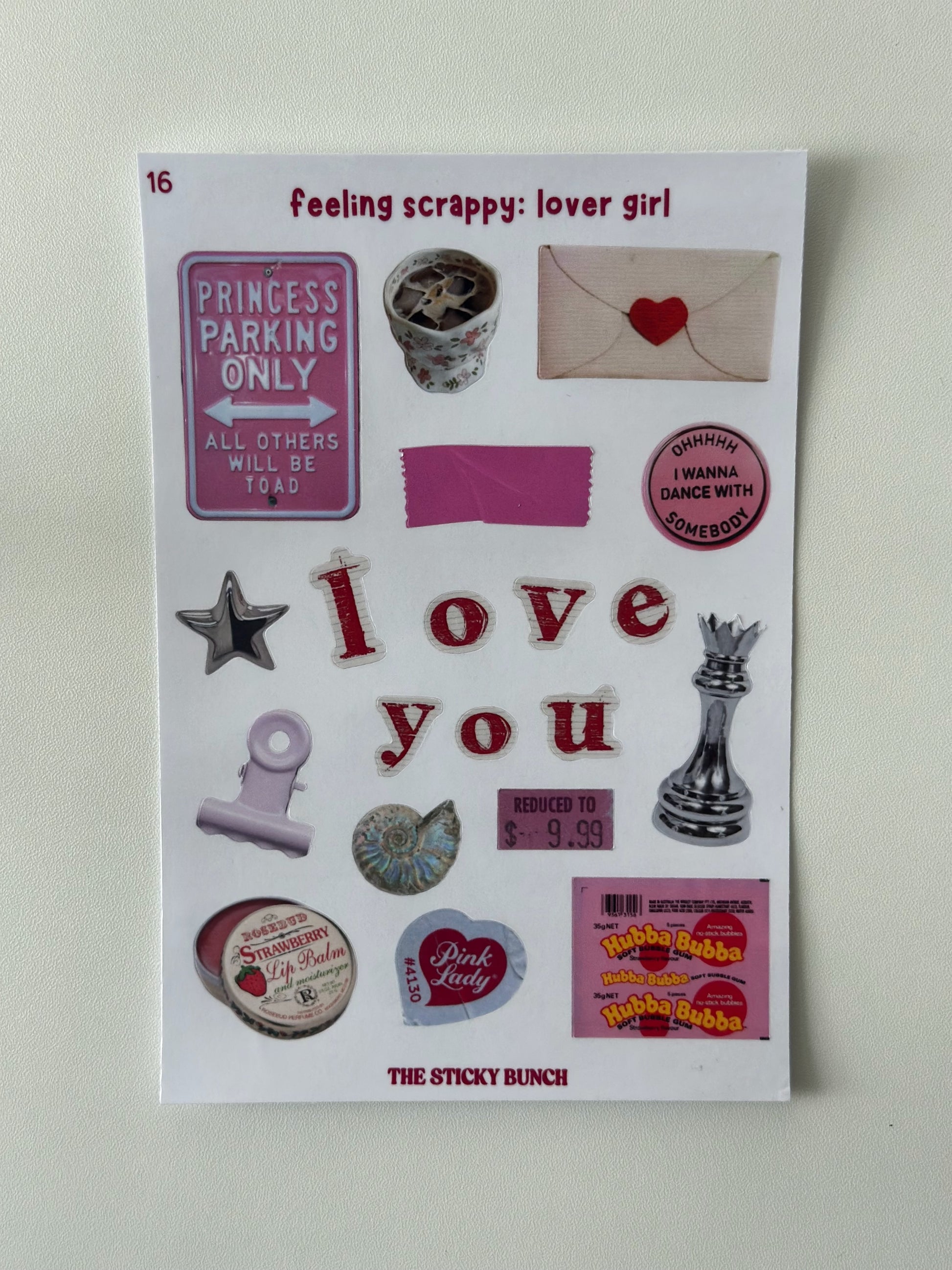 Add a touch of romance to your pages with Feeling Scrappy: Lover Girl. This sticker sheet is drenched in soft pinks and sweet details that give off major dreamy, heart-eyed vibes. Think love notes, dainty trinkets, and all the little symbols of crushes, daydreams, and girly nostalgia.