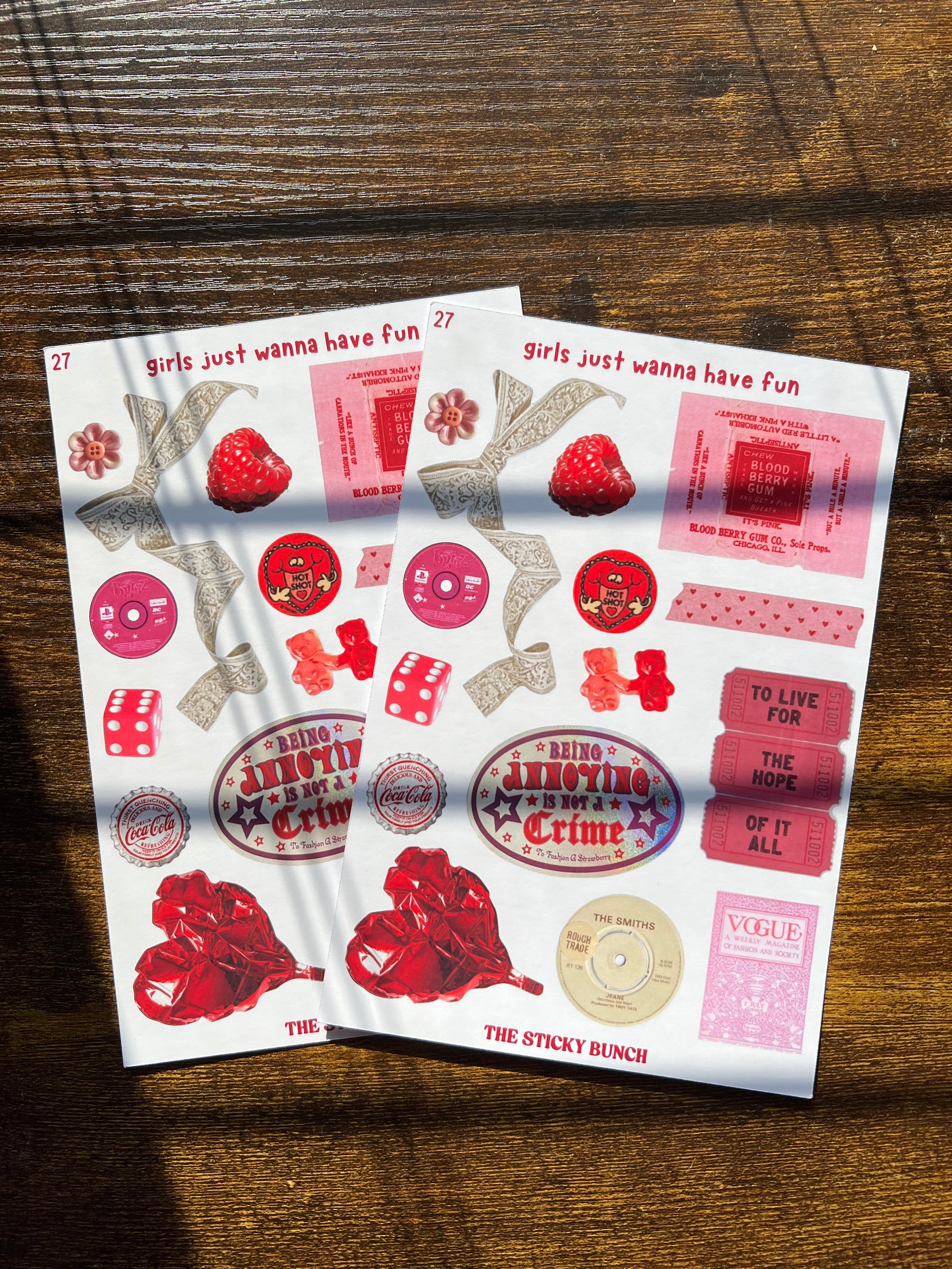 Bring the party to your pages with Girls Just Wanna Have Fun, a playful pink sticker sheet that radiates carefree energy. Think bubbly, bold, and unapologetically girly—perfect for capturing moments of joy, friendship, and self-expression.
