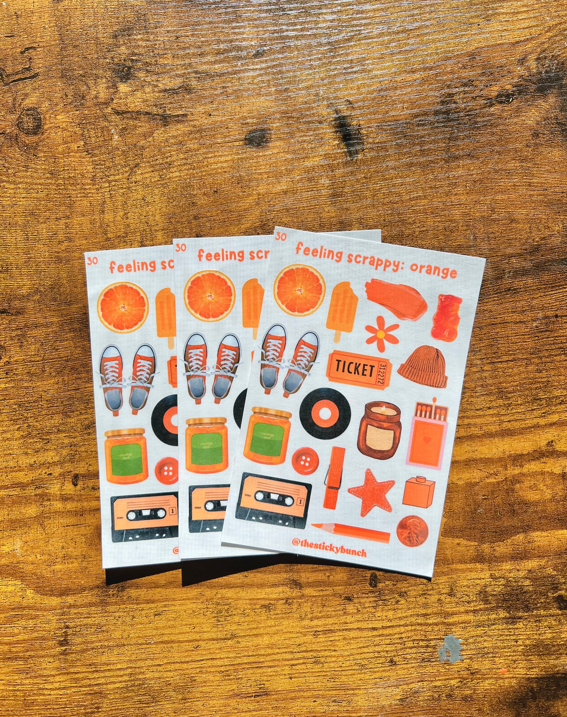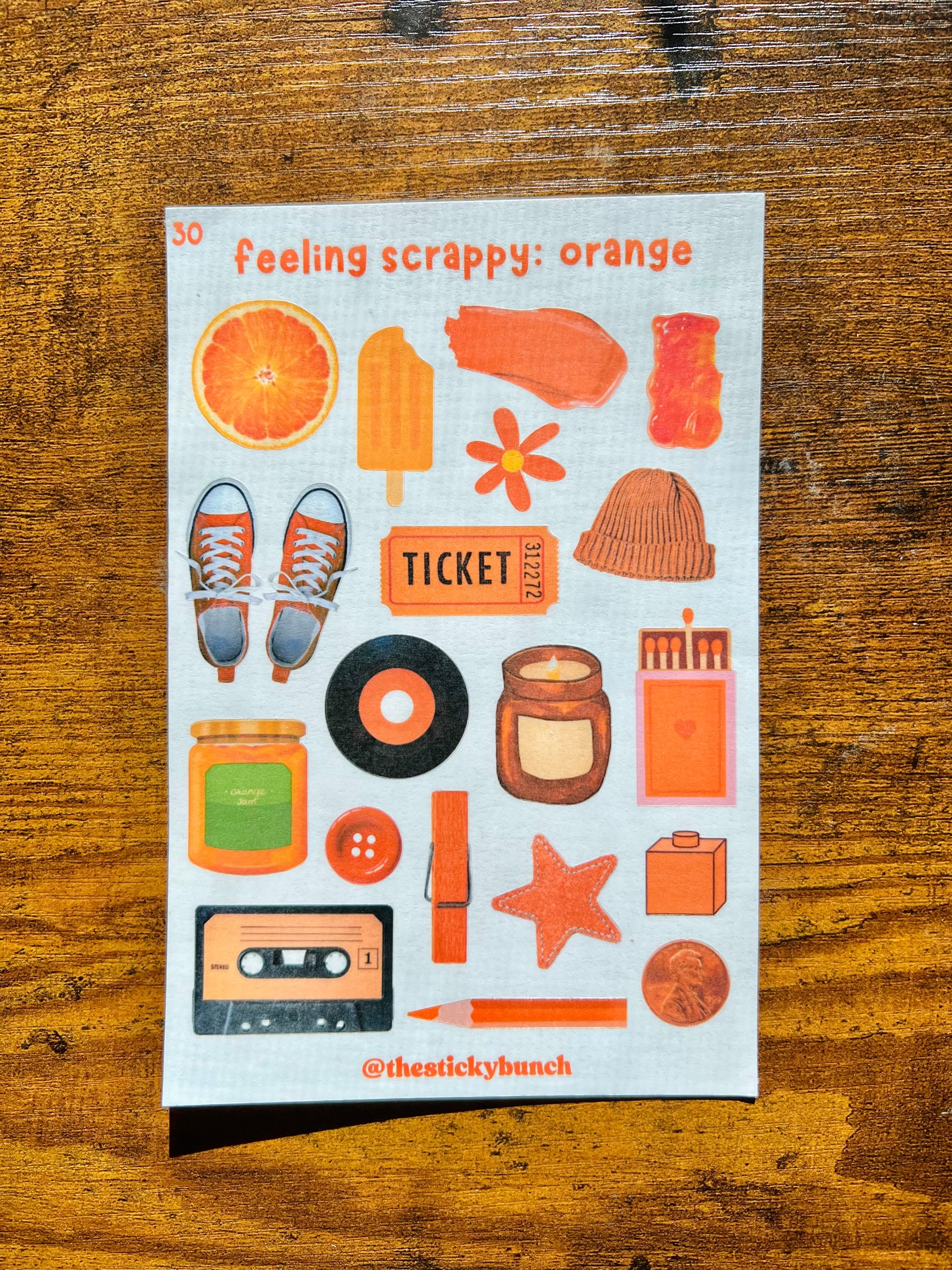 This Feeling Scrappy: Orange sticker sheet is bursting with all things bright, bold, and citrusy! Packed with a playful mix of random orange-toned objects—from quirky bits to everyday things—this sheet is perfect for adding a punch of color to your journal, planner, or collage.