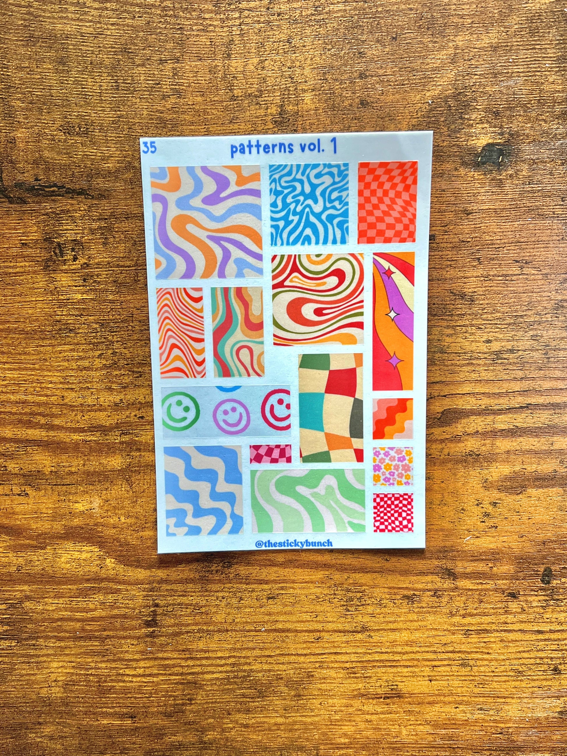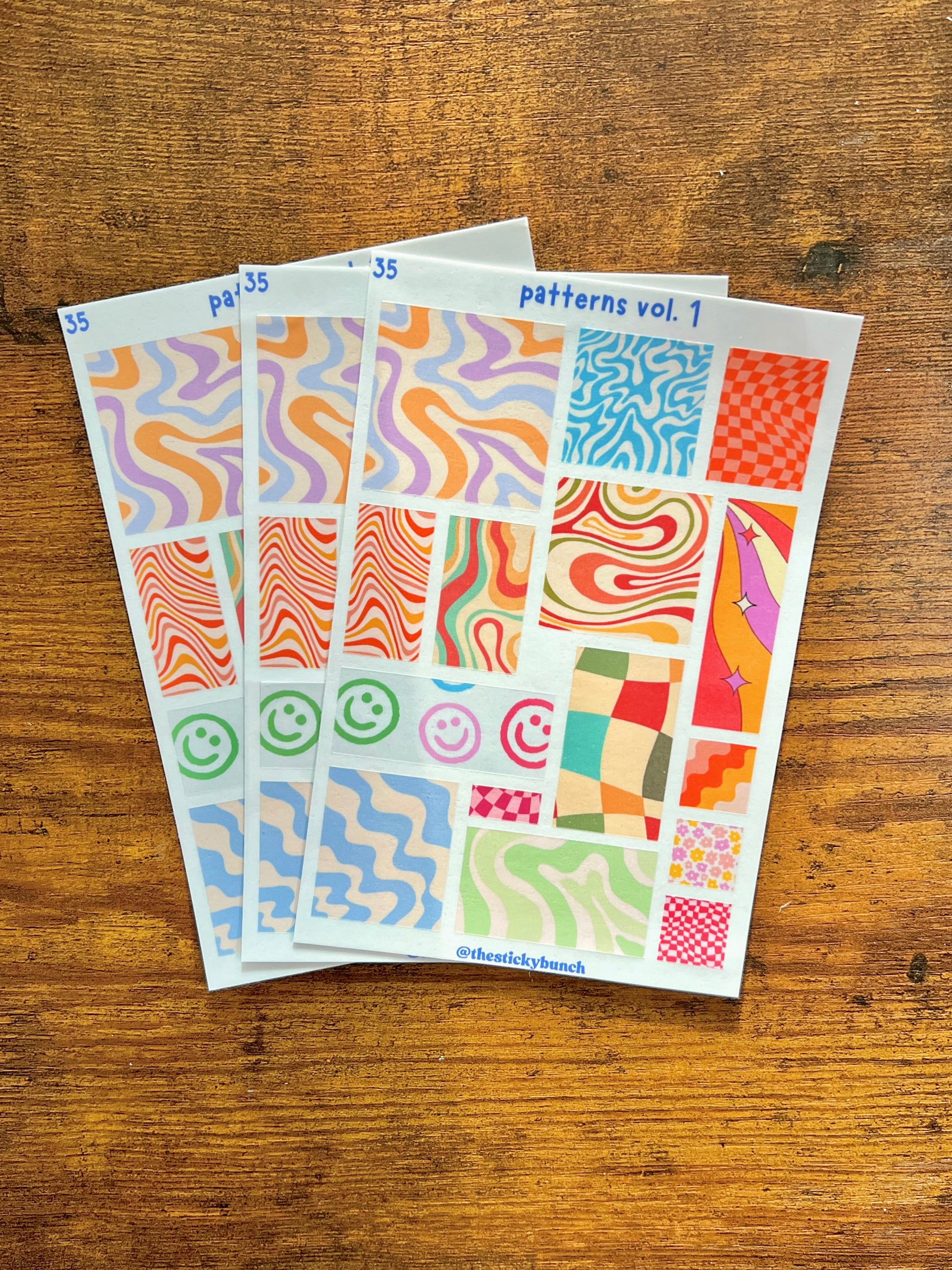 Add a pop of retro charm to your spreads with Patterns Vol. 1 — a groovy little collection of 15 patterned stickers perfect for layering, framing, or just vibing out your journal or planner. With wavy lines, funky florals, and bold color combos, this sheet brings the right kind of chaos to your collaging game.