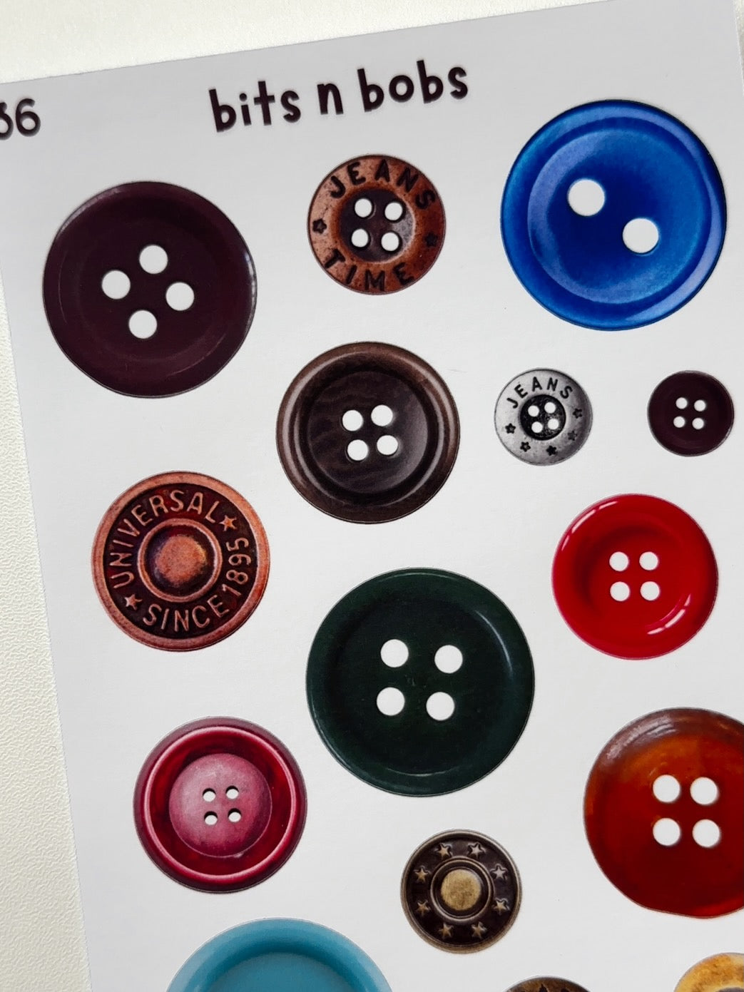 Give your pages that perfectly finished look with Bits n Bobs — a collection of button and jeans hardware stickers that bring subtle texture and charm to any spread. Think classic buttons, rivets, and snaps, ready to add a touch of utility-core flair to your journaling or planning.