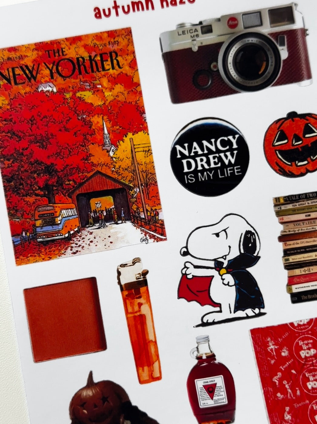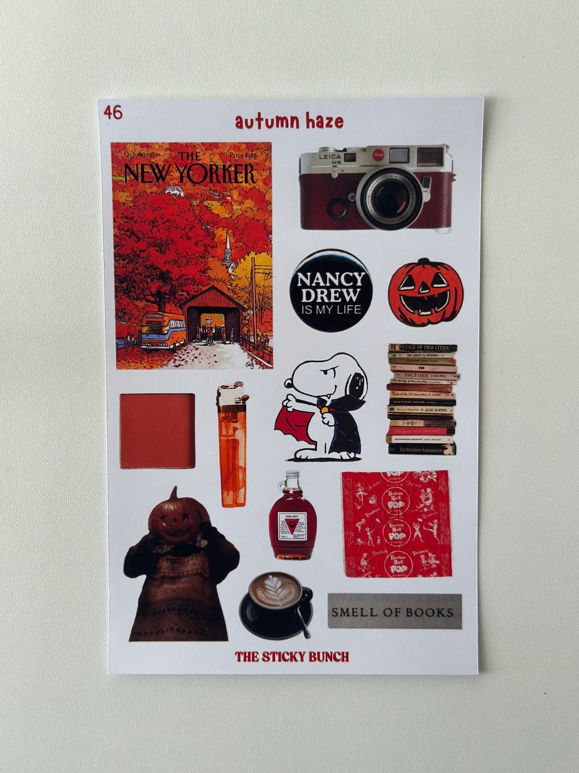 Step into the season with Autumn Haze, a sticker sheet in glowing shades of orange that capture both the cozy charm of fall and the subtle spookiness of Halloween. Think crisp leaves, harvest tones, and little details that hint at the magic of October nights.